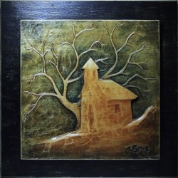 Farebný reliéf z lipového dreva s vyrazeným autorským podpisom. Inšpirácia zo Svrčinovca, kombinovaná technika s konečnou voskovou úpravou.